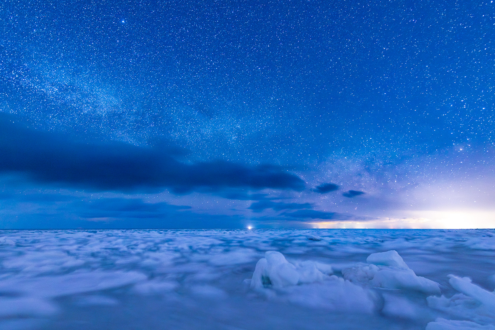 深夜から朝にかけての気温が氷点下20度になる厳冬期。野付半島の北側に広がるオホーツク海には、北からの気まぐれな風次第で、不定期に流氷が流れ着く。ちょうど2月中旬あたりからは、夜明け前の1時間程度、東の空に天の川が現れ、このエリアだけの「流氷と天の川」という奇跡的なシーンの撮影が可能になります。