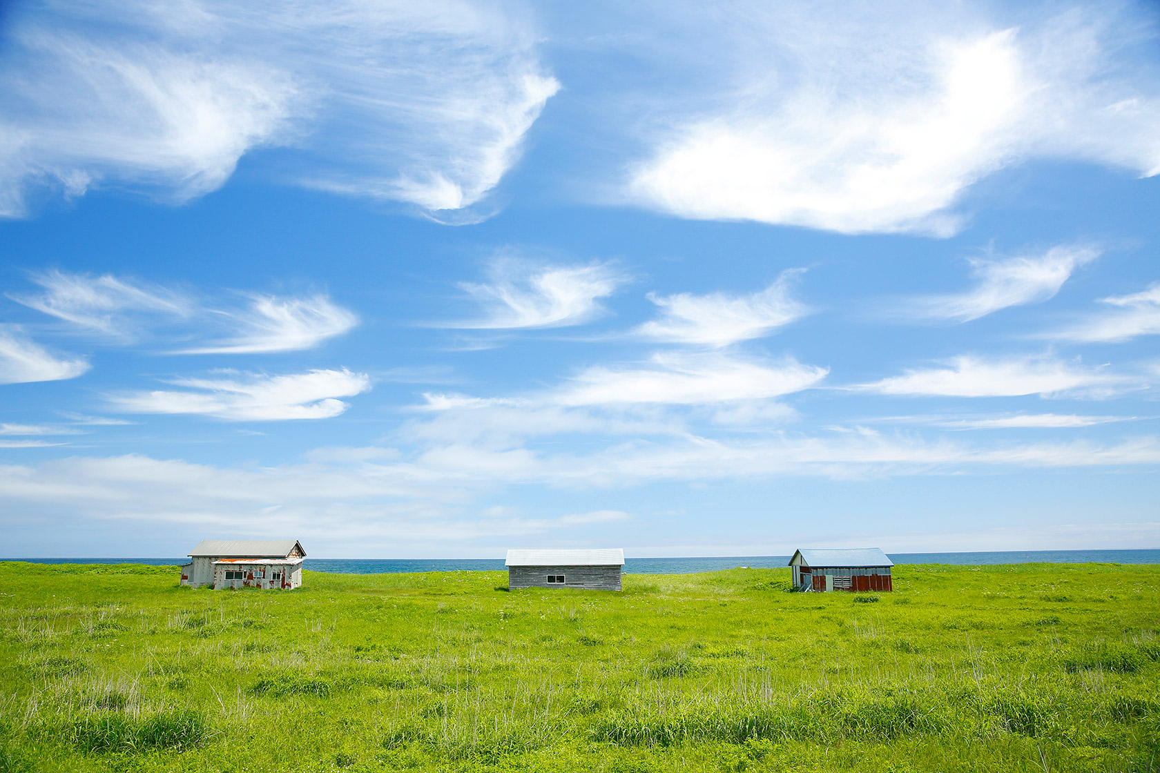 この小屋は古い番屋(漁の作業場)で、特に春から夏にかけては、周辺の緑の草原の中での撮影が楽しめるため、“映えスポット”を求める女子の間で特に人気を博しています。一面真っ白な雪の中にたたずむ冬もオススメのシーズン。現在は、建物の痛みが激しいため、遠景で空とうまく組み合わせた撮影がオススメ。