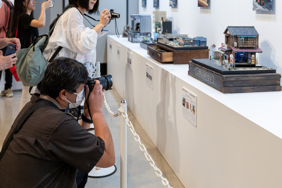 撮り方や撮る人、肉眼とカメラ越しでもジオラマの味わいが変わるため、創作意欲が刺激され、多くの来場者が真剣にカメラを構えていました。