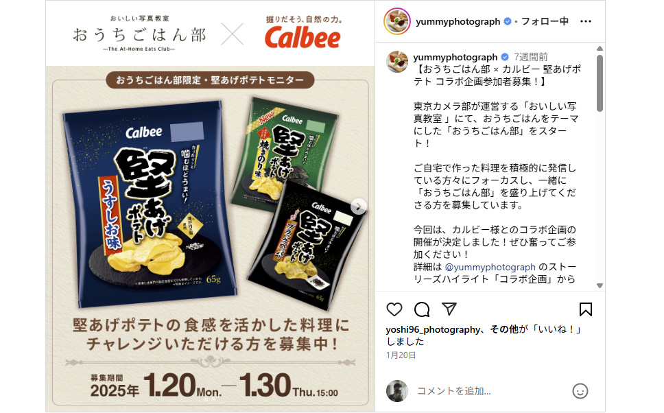 【モニターコラボを開催しました】カルビー堅あげポテト × おいしい写真教室「おうちごはん部」アレンジレシピ募集