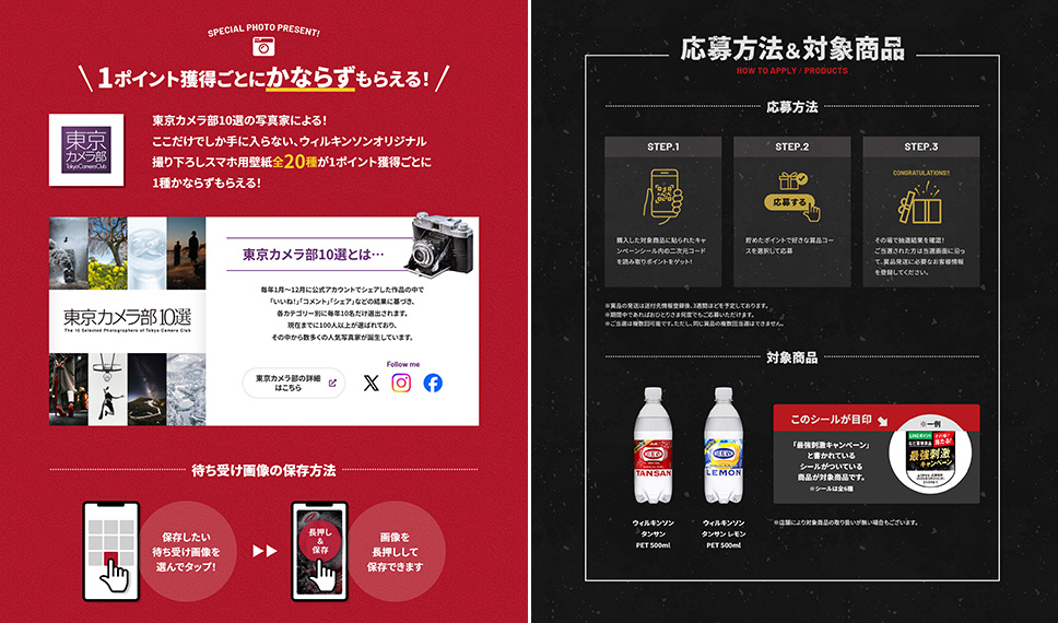 炭酸水売上No.1※を誇るアサヒ飲料株式会社の炭酸水ブランドである「ウィルキンソン」が「最強刺激キャンペーン」を開催し、参加特典として東京カメラ部10選が撮り下ろした写真のプレゼント企画が実施されました。