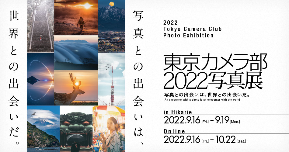 2021年に東京カメラ部とその分室で11億人を超える人々が約4,250万作品の中から選んだ作品「10選2021」を中心に新作、自信作を追加。更に2012年、2013年、2014年、2015年、2016年、2017年、2018年、2019年、2020年に選ばれた10選メンバーを加えた、10選10世代による合同展示に、日本全国の名勝地、観光業の支援の要素をより強くするため日本全国名勝地の四季写真を募集したフォトコンテスト「日本写真100景<四季>2022」の入選作品、「東京カメラ部2022写真コンテスト Instagram部門(3×3)」の入選作品、「Japan Travel Gallery Photo Contest」の入選作品、東京カメラ部Weiboアカウントにて開催した“私と写真撮影との物語”がテーマのフォトコンテスト入選作品と東京カメラ部Weiboアカウントへのご投稿作品から選ばれた作品、“おすすめのご当地グルメ”をテーマにしたTwitterフォトコンテストの入選作品、さらには日本写真100景の応募作品より各地の「城と月」の素晴らしい作品を集めた「城と月」特別部門展示も加え、約733作品を展示。