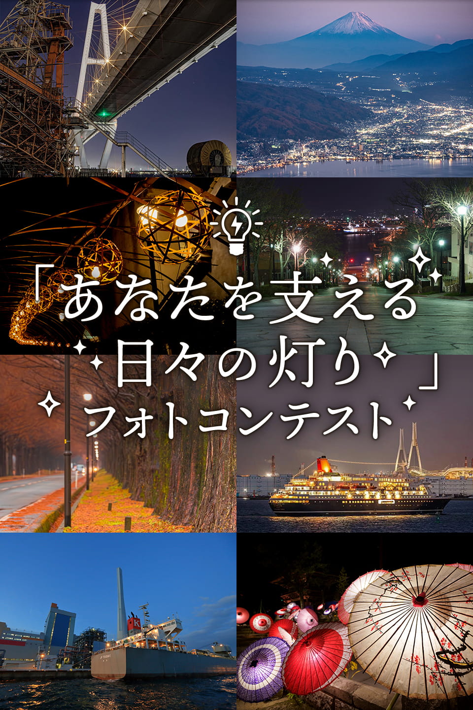 高台から見える夜景や温かみのある街灯、風情あるライトアップなど、あなたの日常を支える灯りの写真をお送りください。