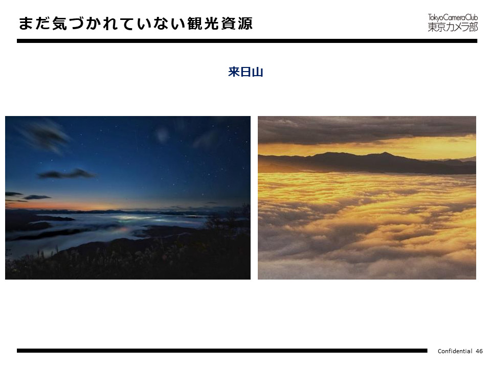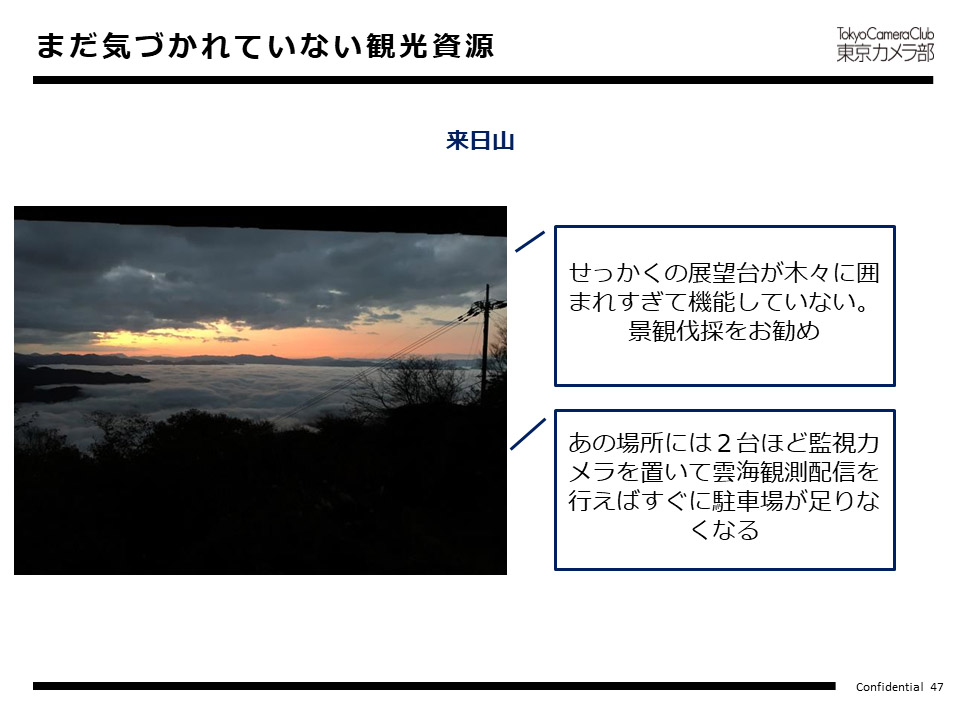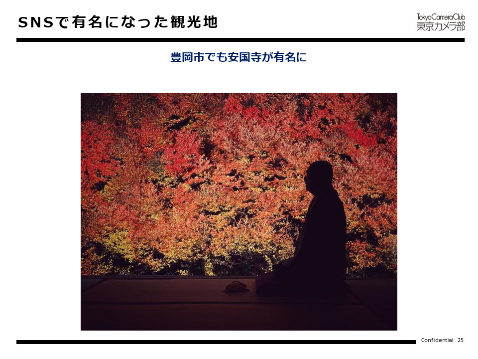 例えば、フォトコンテストで入賞するレベルの写真が撮られている場所は、よく撮られていて、既に発信されていて、撮りやすい場所なのだと言えます。その場所については、先ほどお話ししたように「お金が落ちているか」、「より単価を上げられないか」を確認・検討いただくと良いでしょう。