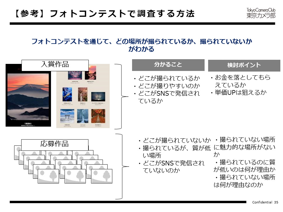 入賞するレベルの写真ではないが、フォトコンテストには応募がある、あるいは応募されない場所は、何が原因なのか現地で探っていただく、そのような調査目的でもフォトコンテストはご活用できます。