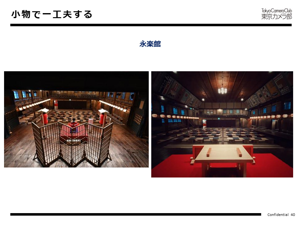 大島氏:歴史的な建物がこんなに美しく現存しているということに驚きました。この写真のとおり、壇上からの景色はなかなか見ることができない特別な体験ですね、と視察時にお話ししたところでした。このアングルは、写真家の皆さまにも喜んでいただけるのではないか、と東京カメラ部からアドバイスがあり、屋内でも視点を変えるだけでフォトスポットになり得るんだというのが、発見でした。