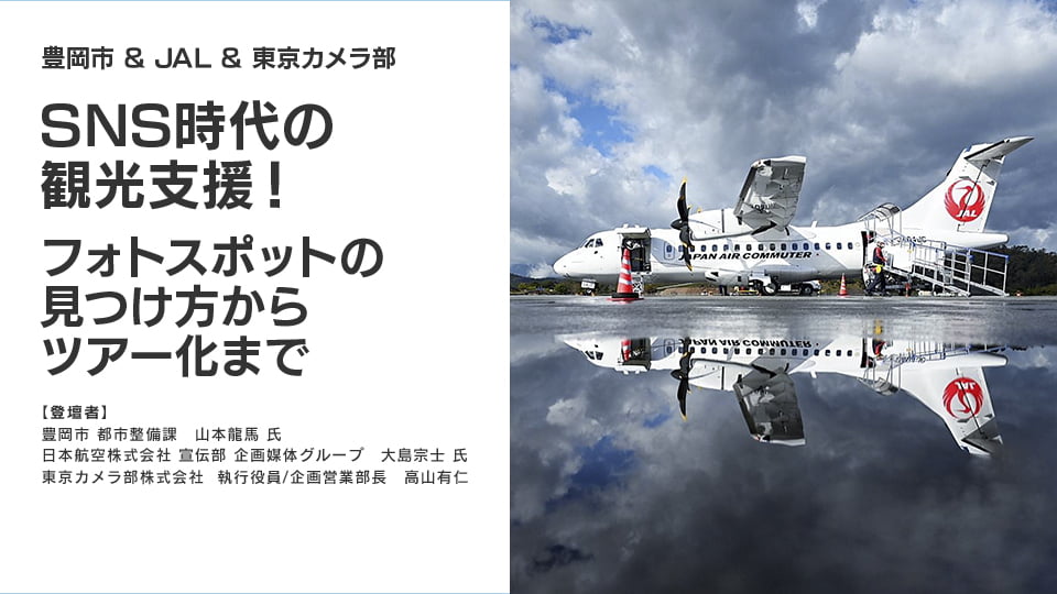 今回は、コウノトリ但馬空港の利用促進を担当され、フォトスポット開発事業の予算確保やフォトスポット整備のご判断などを推進された豊岡市のご担当者さま、ツアー造成やプロモーションを推進された日本航空宣伝部のご担当者さまをお招きし、フォトスポット開発やアドバイス、SNS上でのプロモーションをサポートした東京カメラ部が聞き手となり、本事業の具体例やポイント・考察をお話しいただきました。