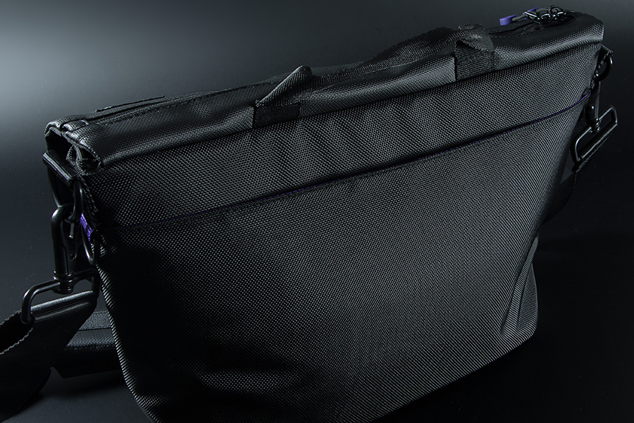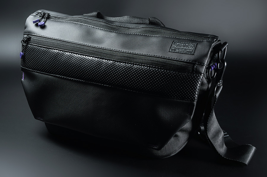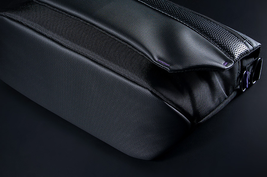 カラーは黒一色となりますが、同じ黒でもフタとなる部分などは材質を変えています。パンチングレザー風のラインも入れ飽きが来ないデザインとなっています。また、外装には防滴加工を施してあります。