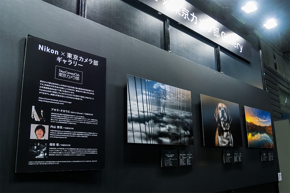 Nikon × 東京カメラ部 トークショー「SNS時代の写真表現」に登壇された東京カメラ部10選のアキラ・タカウエ(10選2013)さん、内山 慎吾(10選2014)さん、福田 悟(10選2012)さんの作品が展示されました。