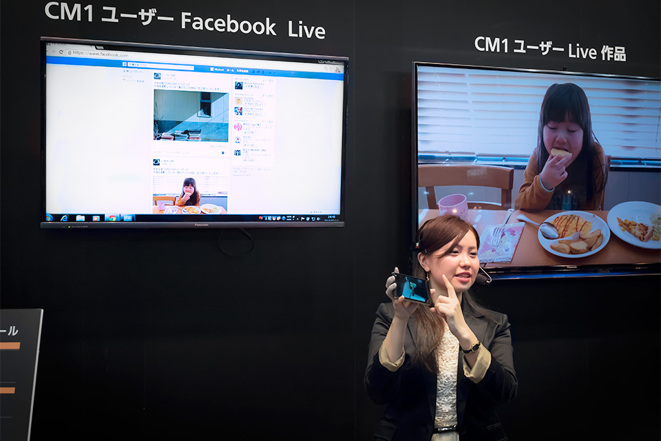 「街中で出会った感動を、幸せな瞬間を、共感に変える」ことが出来るLUMIX CM1を用いて、高画質の写真をリアルタイムに友達などと共有出来る“Live投稿”の説明と実況中継を行いました。