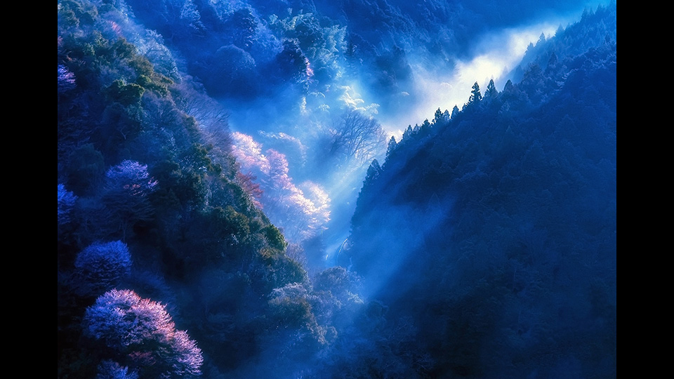 「これは奈良の吉野の桜です。有名な下千本、中千本、上千本という場所よりもかなり手前にあって、まだ桜もそんなにない場所なんですが、偶然通りがかりに見かけて慌てて撮りました。この作品は僕にとってはRAW現像の可能性を見つける最初のきっかけになったような作品です。ずいぶん昔に撮影したのでD70という古いカメラで撮っているんですが、オートのホワイトバランスでただ撮っていたので作品になるような絵ではなかったんです。ただすべてRAWで記録していましたので、しばらく経ってからRAW現像してホワイトバランスを大きく変えて、桜の色を出すということをやってみて、影とか光の関係をうまく出すことができました。それ以降、僕の作品はRAW現像を中心としています。当時はRAW現像ソフトも進化していなかったので、当時だとこういう絵はたぶん出せなかったと思います。最近のソフトの進歩によって、新しい表現ができるようになったと思います。」