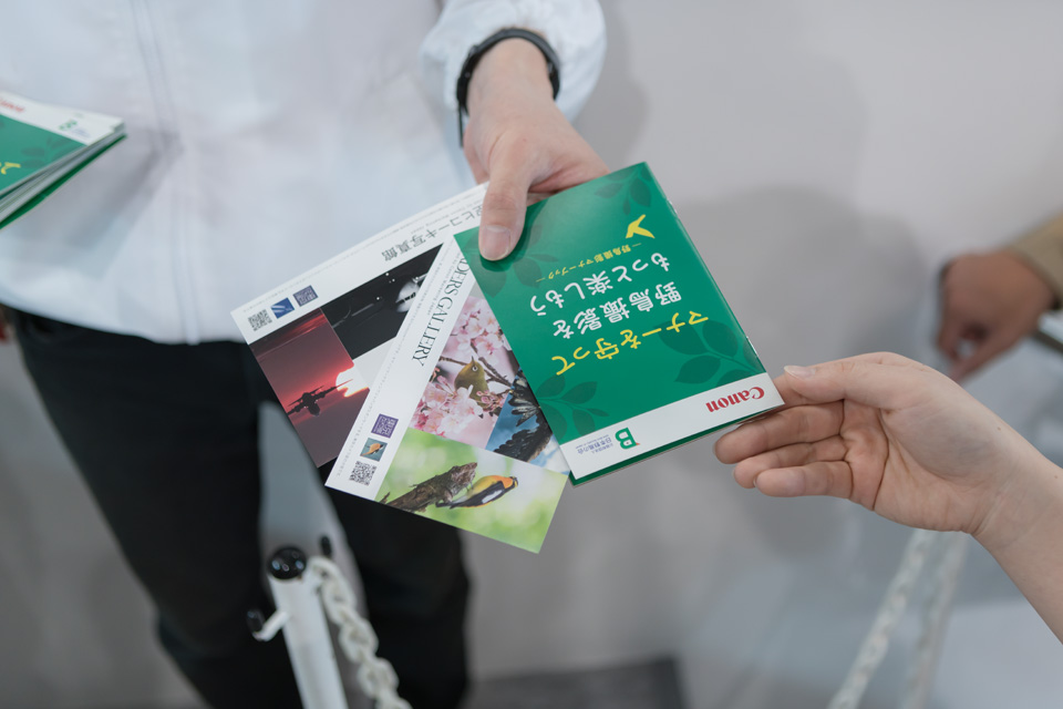 キヤノンマーケティングジャパンにスポンサードいただいている東京カメラ部分室「BIRDERS GALLERY」、「大空ヒコーキ写真館」のポストカードを配布。