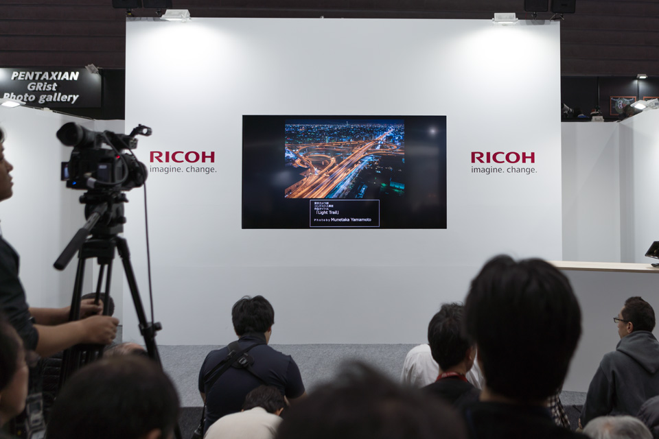 トークステージの液晶ディスプレイで、リコーイメージングの製品で撮影された東京カメラ部メンバーの作品を展示。