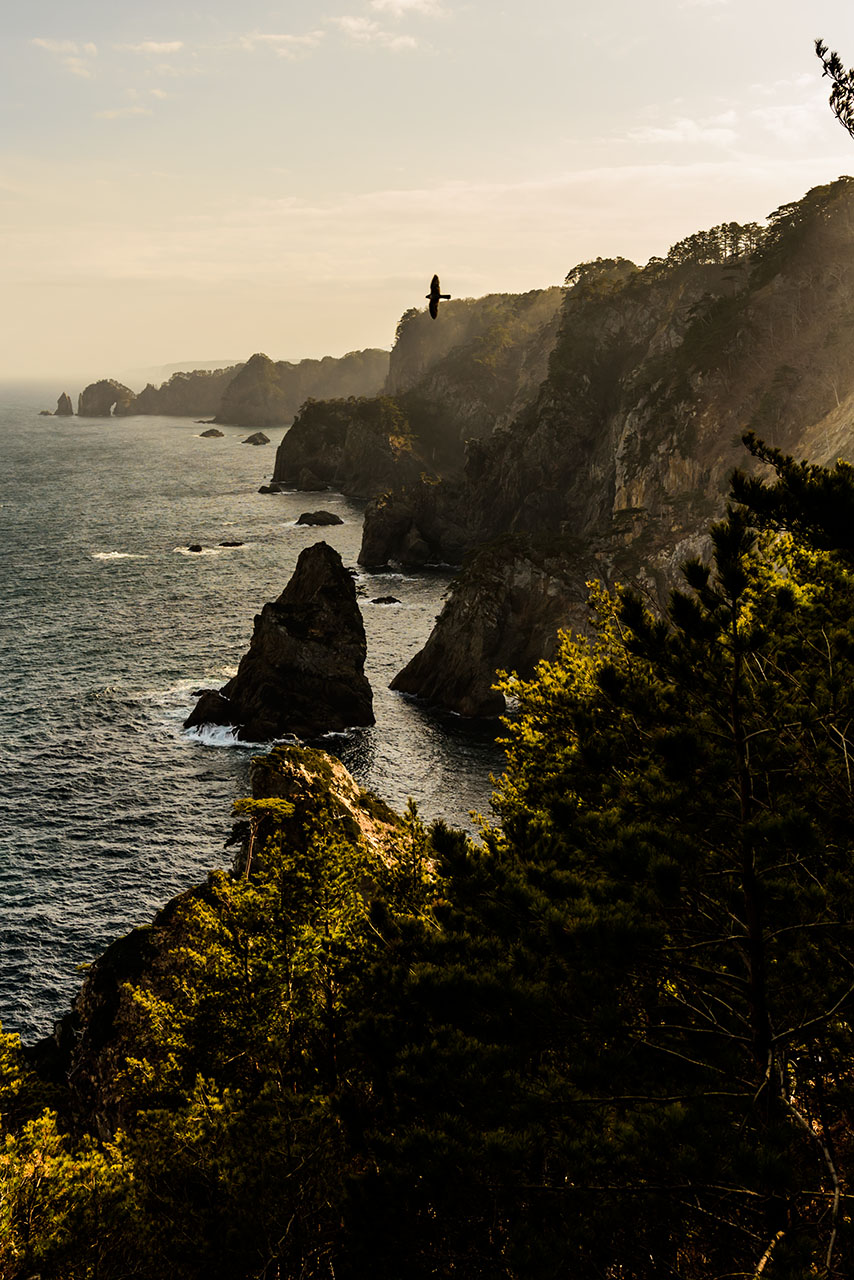 この度は東京カメラ部2015写真展[日本の47枚]に選んで頂き、ありがとうございます。 この写真は、今年3月に東北地方を旅行した際に岩手県田野畑村の北山崎展望台から撮影した三陸海岸の景色です。岩肌をむき出しにした高さ200mの断崖が連続し、絶壁の下には巨岩や海食洞門が散らばっている海岸線に圧倒され、それを見下ろしているミサゴ(魚鷹)の勇壮な姿に感動しました。 私は約30年前の学生時代に中古の一眼レフカメラを購入した事をきっかけに写真を楽しんでいましたが、社会人になってから20年以上写真から遠ざかっていました。しかし、昨年からF.Bの東京カメラ部に参加して以来、写真だけでなく人生の楽しみ方が大きく変わりました。写真を撮りに旅行に出かけたり、SNSを通して知り合った友達とのフォトウォークや先輩方からのコメントやアドバイスが喜びになっています。 この写真展をきっかけに写真を始められる方がいらっしゃれば嬉しいです。 最後に東京カメラ部、写真をきっかけに繋がった友人達と家族に感謝します。