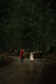 おとぎのヒロインと花粉症狼。 日光杉並木街道にて。