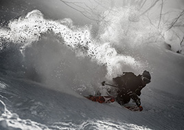 写真歴は4年程で、結婚を期に興味のあった一眼レフを買いました。娘が生まれ、その子の思い出を写真として残していこうと思うようになりました。そして、折角買ったカメラの使う機会を増やそうと、趣味のスノーボード、登山へ持ち出すようになります。この写真は、仲間とバックカントリーへ出かけた時の一枚です。北斜面の上質なパウダー、逆光が差す条件で思い通りの写真が撮れました。 この一枚を選んでいただいて本当に嬉しく思います。
