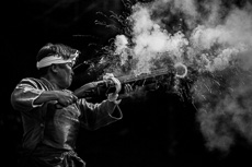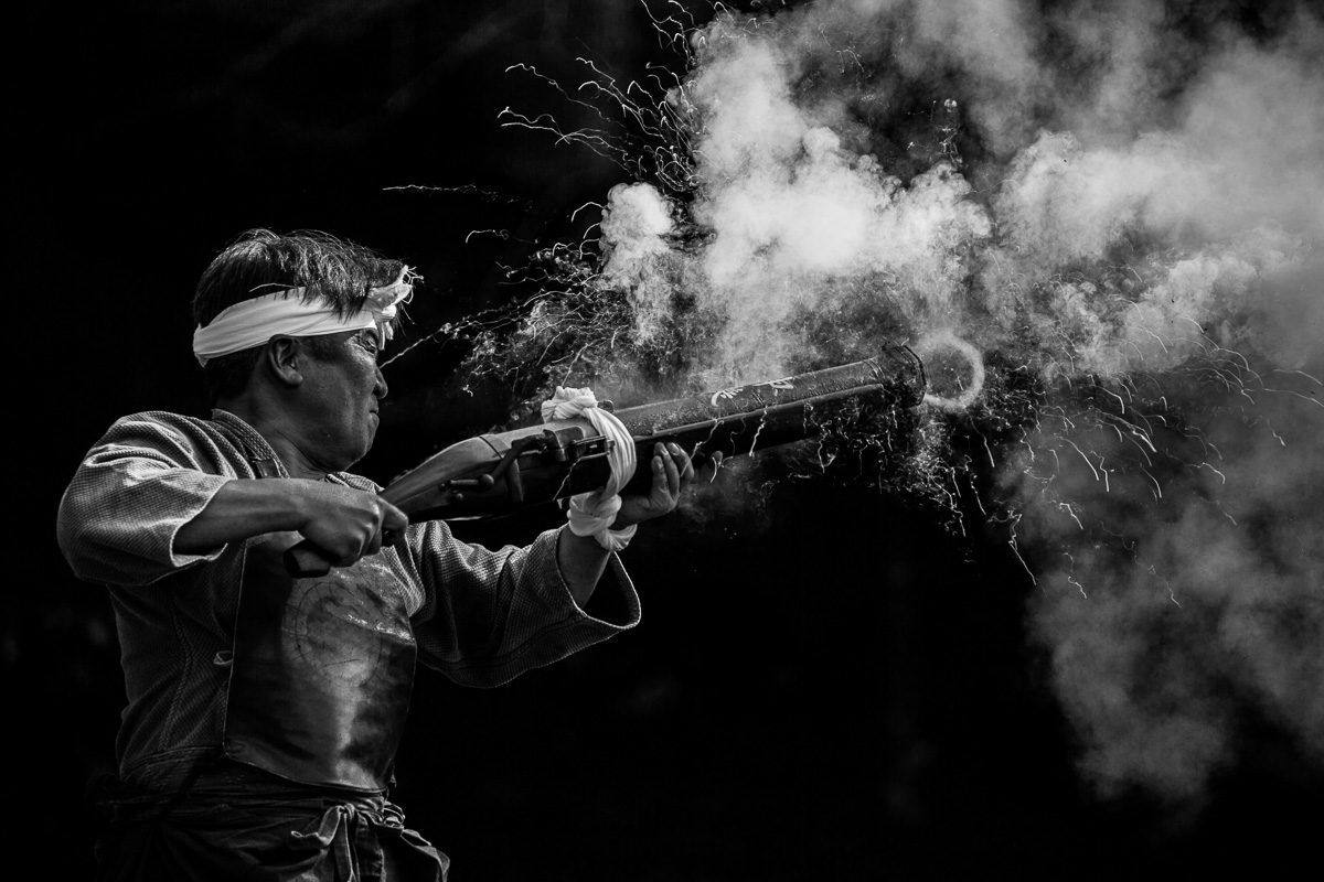 9年前、結婚を機に思い出を残していこうと始めたのが写真でした。飽きっぽい私ですが写真だけは以来撮り続けています。いつしか周りには写真好きな仲間もでき、写真で繋がった輪が大きくなって行くのを感じております。普段私が撮った写真をSNS、スマホの待ち受け、プリントまで、身近な所で見て頂いていることが何より幸せです。今回の入選も皆さんに喜んでいただき、大変嬉しく思っております。今回の写真ですが、高速シャッターでタイミングも一瞬でした。現場では何人か打ち手がいましたが、光が強く当たっている方を選び、背景が写り込まないようにしました。現像では煙を目立たせるためモノクロを選択し、レンズの周辺減光を補正せず残すことで、手元に注意が向きやすいように工夫しております。これからも「自分の心に残る写真を撮りたい。そしていつかは人の心にも残る写真を撮りたい。」と願いながらカメラを持ちたいです。