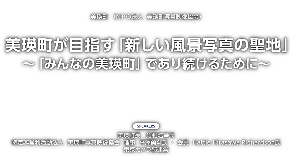 9月17日(日)に行われた北海道 美瑛町(NPO法人 美瑛町写真映像協会)のトークショーでは、美瑛町長の角和浩幸氏、美瑛町写真映像協会・理事の平澤勇斗氏、美瑛町写真映像協会会員のHattie Hirasawa Richardson氏にご登壇いただき、「美瑛町が目指す『新しい風景写真の聖地』~『みんなの美瑛町』であり続けるために~」というテーマでお話しいただきました。