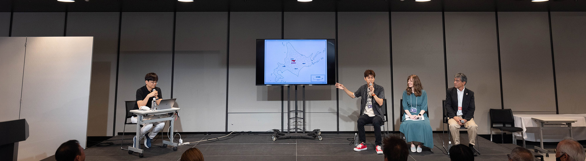 角和「みなさん、こんにちは。美瑛町長をしております角和浩幸と申します。本日このような場を与えていただきましてありがとうございます。また、ご参加いただきましてありがとうございます。いまは町長職に就いていますが、生まれは横浜です。東横線沿線に実家がありまして、渋谷はわたしにとって馴染みのある土地ですが、子供の頃は東横線とヒカリエが連結するなんて夢にも思っていませんでした。美瑛町へは風景に憧れ、農業をするために移住し、いまも農家をやっております。みなさんが大好きな美瑛町の風景は、わたしの中でも原風景であり大好きです。そしてそこで営まれている農業が美瑛町の風景を作っているということを、この場でお伝えできればいいなと思っております。本日はよろしくお願いします」