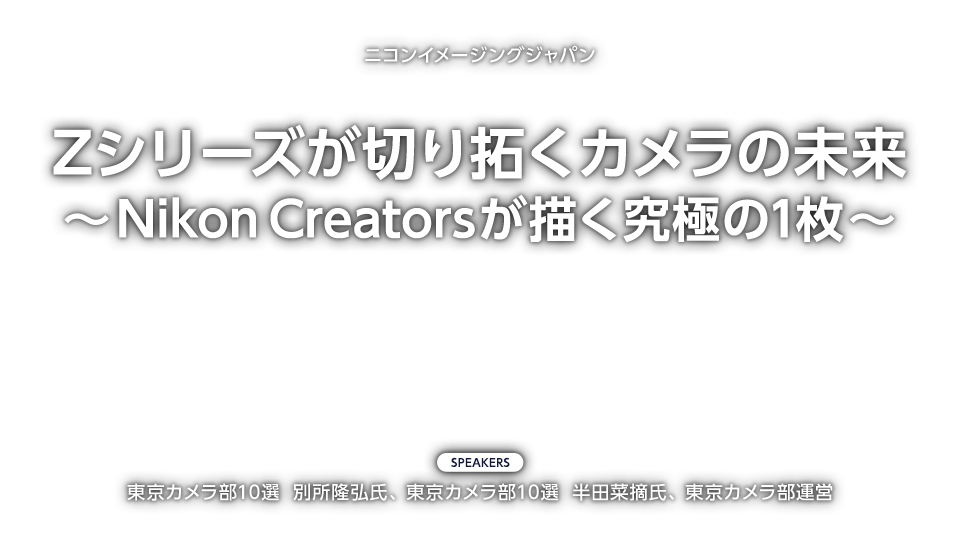 9月16日(土)に行われたニコンイメージングジャパンのトークショーでは、東京カメラ部10選の別所隆弘氏と半田菜摘氏にご登壇いただき、「Zシリーズが切り拓くカメラの未来 ~Nikon Creatorsが描く究極の1枚~」というテーマでお話しいただきました。