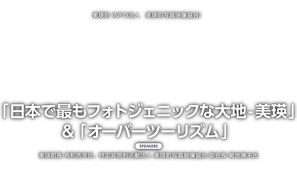 9月21日(土)に行われた美瑛町(NPO法人 美瑛町写真映像協会)のトークショーでは、美瑛町長 角和浩幸氏、特定非営利活動法人 美瑛町写真映像協会 副会長 菊地晴夫氏にご登壇いただき、「日本で最もフォトジェニックな大地-美瑛」&「オーバーツーリズム」というテーマでお話しいただきました。