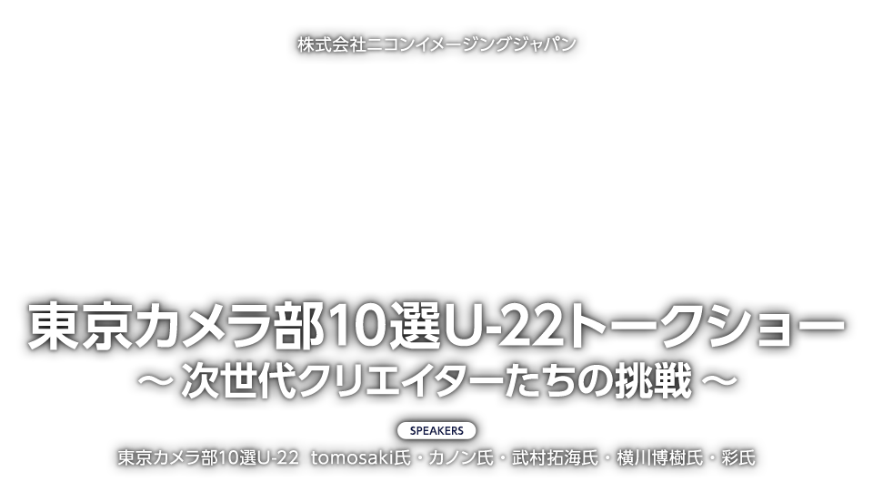 9月22日(日)に行われた株式会社ニコンイメージングジャパンのトークショーでは、東京カメラ部10選U-22のtomosaki氏、カノン氏、武村拓海氏、横川博樹氏、彩氏にご登壇いただき、「東京カメラ部10選U-22トークショー ~次世代クリエイターたちの挑戦~」というテーマでお話しいただきました。