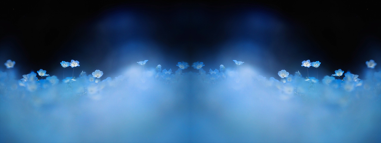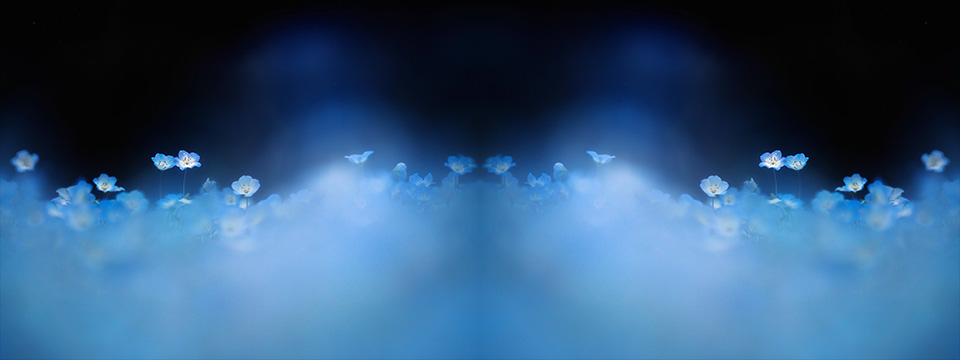 鈴木「花の撮影は背景選びがとても重要だと思います。ネモフィラのような小さい花はローアングルになりますが、PEN-Fのようなバリアングル液晶はとても重宝します。この写真は、同じ写真を反転して繋げています。その方が、広がりが出るかと思いまして。ちょっとした遊び心です」