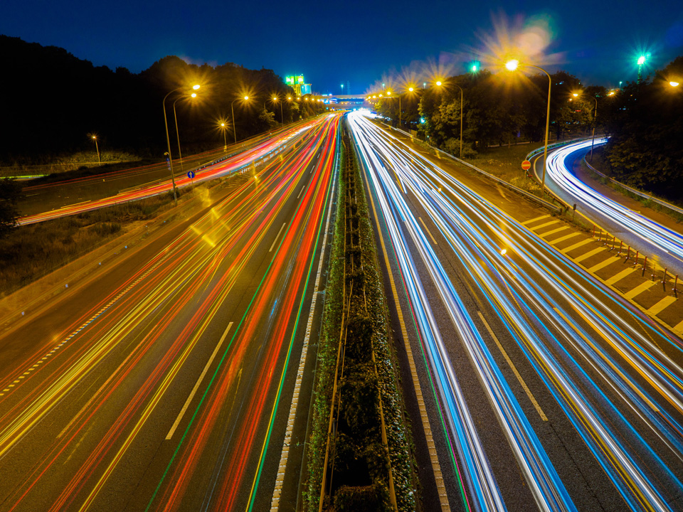鈴木「高速道路に架かる橋の上に三脚を立てて撮りました。『ライブコンポジット』を使っており、液晶モニターで光の線がどれだけ増えたかを確認しながら撮影できるのは便利です。あまり露光しすぎると光が太い束になってうるさい感じになってしまいます。それを見計らって露光を止めています」