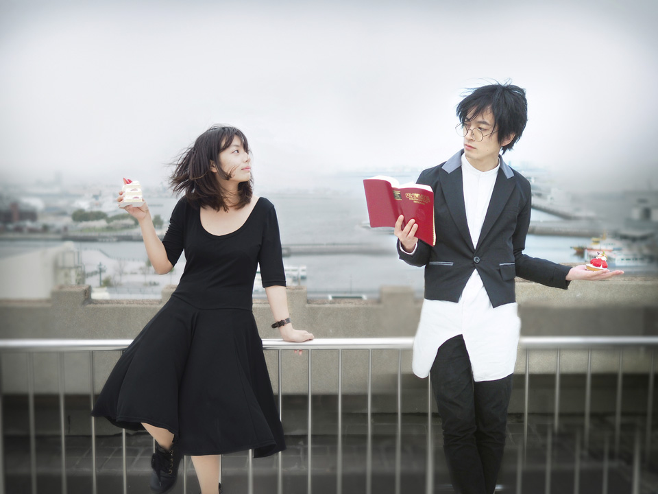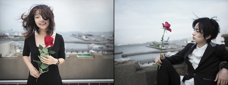 宇賀地「2枚目もふたりが出会っていく過程です。ケーキは特に意味がないのですが、ビジュアル的にイチゴがのったケーキを持ってもらいたいと思っていて、撮影に使いました。バラは次の写真にも写ってきますが、このバラが出会ったときに重要な意味を持ってくるんです」