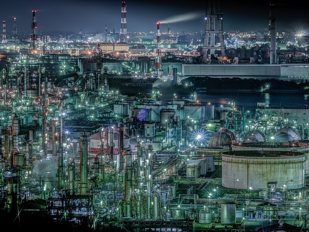 私の作品を見ていただいた大半の方が「絵みたい」と口に出していましたが、それはHDRによる絵画調表現なのでそう思われるのは当然なのですが、今回私がこだわっていたのはメタリック感の強い工場夜景に色調として和テイストと調和させたいという点でした。