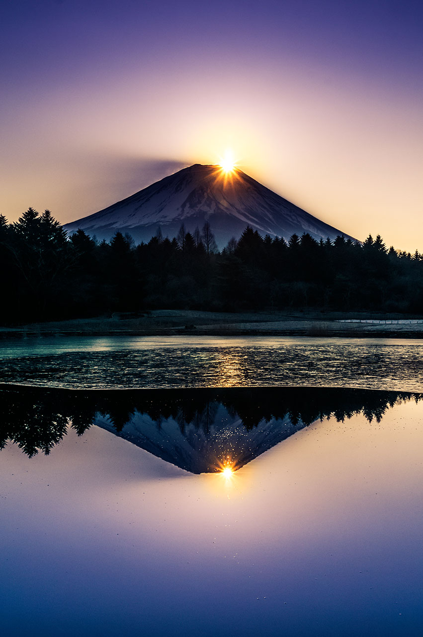 東京カメラ部2015フォトコンテスト「日本の47枚」山梨県の一枚に富士山の写真を選んで頂き本当にありがとうございました。 思えば1年前と少し前、東京カメラ部に投稿される素晴らしい写真を見て 「いつかこんなにスゴイ写真を撮ってみたいと」思い撮影に出かける様になりました。 Facebookや東京カメラ部から繋がるの多くの方々から刺激を頂き結果として入選できた事を心よりお礼申し上げます。 自分の作品は見たままを伝えるのではなく「記憶の再現」を考えて仕上げています。 「記憶の再現」とは「自分の見たもの+感じた思い」を自分の色で表現する事だと思っています。 選んで頂いた作品は年の瀬も押し迫る12月31日、その年最後の日の出をダブルダイヤモンド富士で写した1枚です。 富士北麓の真冬の冷え込んだ朝の寒さと、日の出の時に感じた陽光の暖かさを感じられる様に作品仕上げてみました。 これからもより多くの人たちに富士山の魅力を伝えていける様に沢山の写真を撮りたいと思います。