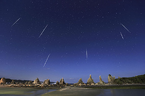 橋杭岩と流星