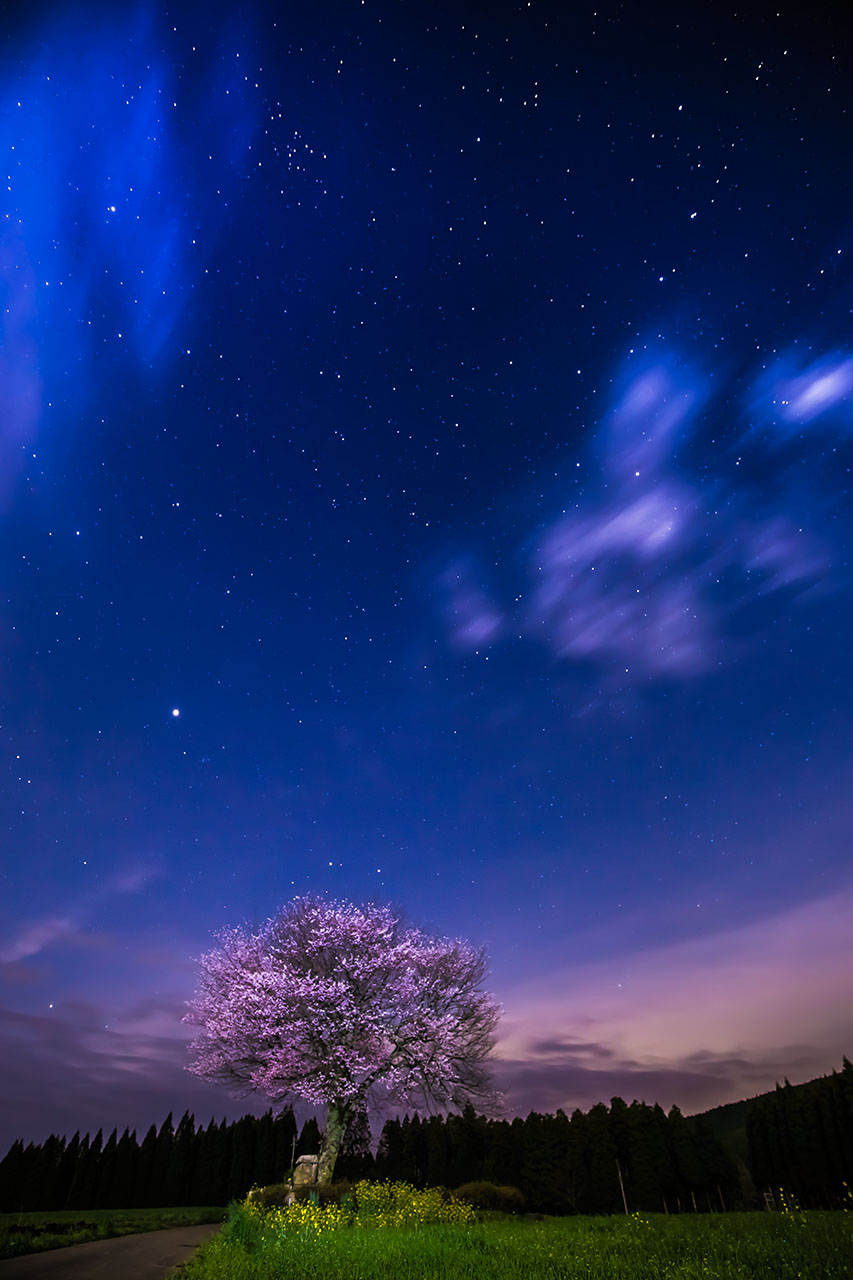 今年の春の夜に熊本県阿蘇郡小国町で撮影した 『前原の一本桜』 です。 前から一度訪れたかったこの場所、初めて見たときには圧倒されました。 今回撮ることが出来なかった昼間も素晴らしい光景を見せてくれますが、 夜の星空とのコラボもまた昼間とは違った素晴らしい光景を見せてくれました。 次回はこの一本桜との違ったコラボにチャレンジしたいと思っています。 今回入選できたことを今後の撮影の励みとし、精進して行きたいと思います。 私の作品を選んで下さった方々、ありがとうございました。