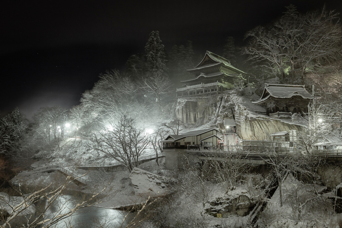 粉雪舞う圓蔵寺